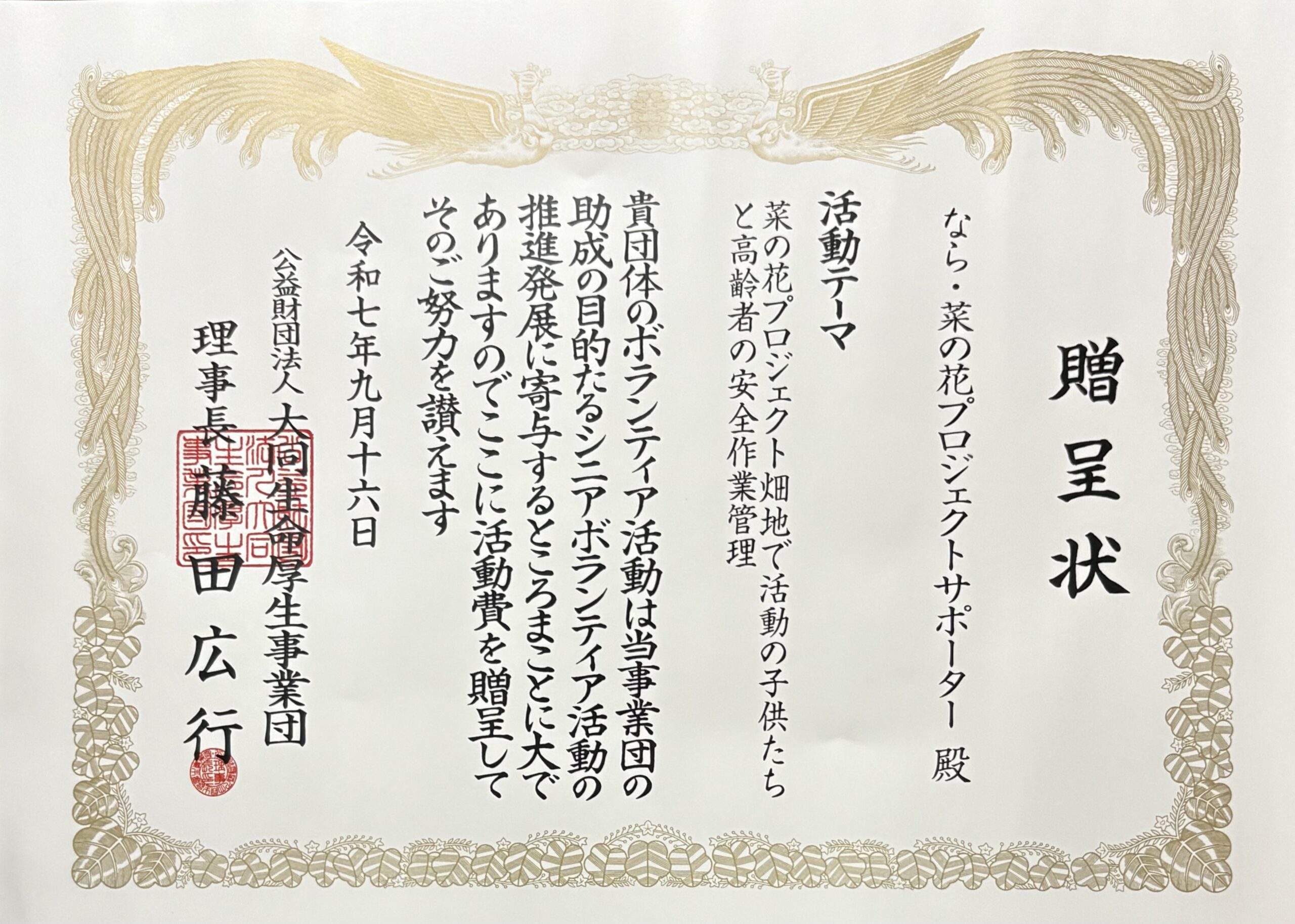 「菜の花プロジェクトサポーター」助成金贈呈頂きました