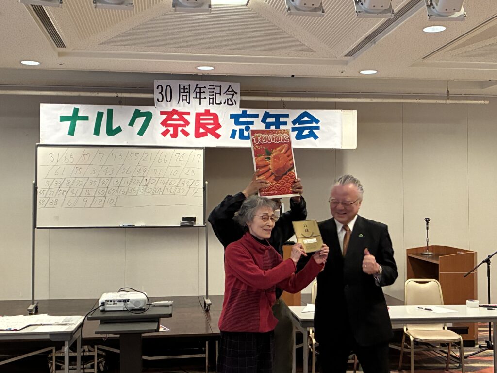 その後サークル発表会、昼食に続き、お楽しみの謝恩ビンゴ大会で大盛り上がり、1等賞から3等賞の方々には野中会長からユーモアあふれるお祝いメッセージとともに賞品をお手渡し頂きました。
